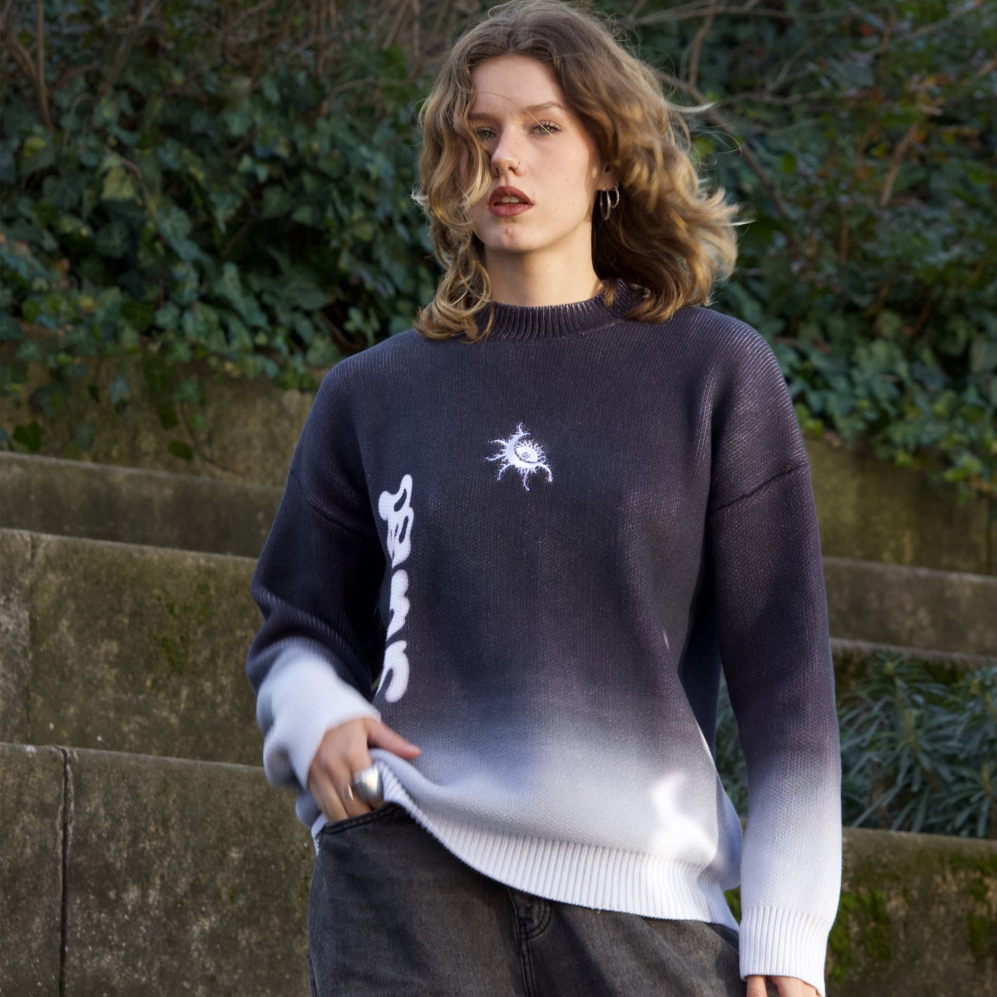 Le TIMELESS CHRONOS KNIT est un pull en maille unisexe inspiré de Chronos, dieu du Temps dans la mythologie, représenté depuis le cosmos.